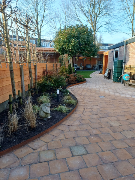 Wat is het een mooie achtertuin geworden! Aanpassingen op het laatste moment? Geen probleem, in goed overleg is (bijna) alles mogelijk. Paaltje minder, lampje meer, muurtje extra? Alles wordt in overleg keurig opgelost.