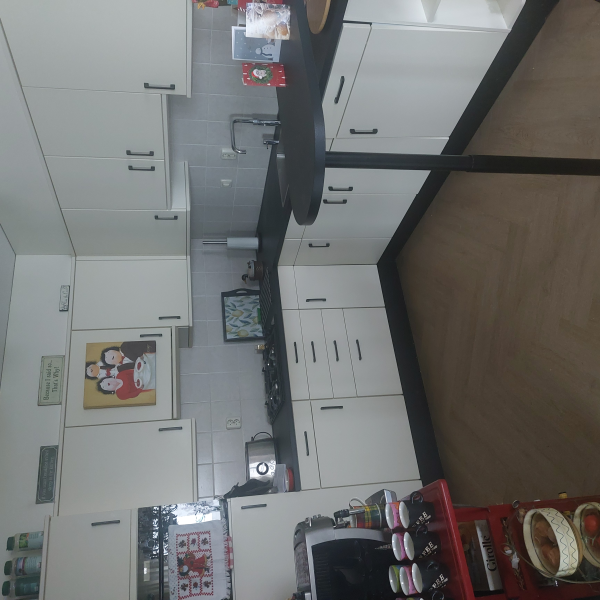 Keuken is zeer vakkundig en precies geplaatst. Ik ben er heel blij mee. Jammer dat er geen tegeltjes nog gezet zullen in. Hier moet een externe tegelzetter voor ingeschakeld worden. Is inmiddels nog niet gebeurd wordt eind oktober. Kleindochter heeft maar een mooie tijdelijke oplossing gemaakt