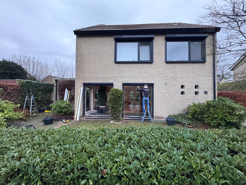 Onze oude kunststof achterdeur is vervangen door een nieuwe deur met een zij- en bovenlicht plus een schuifhordeur. Alles van topkwaliteit en door 1 man vakkundig en netjes vervangen! Op ‘t Hoog is een aanrader.