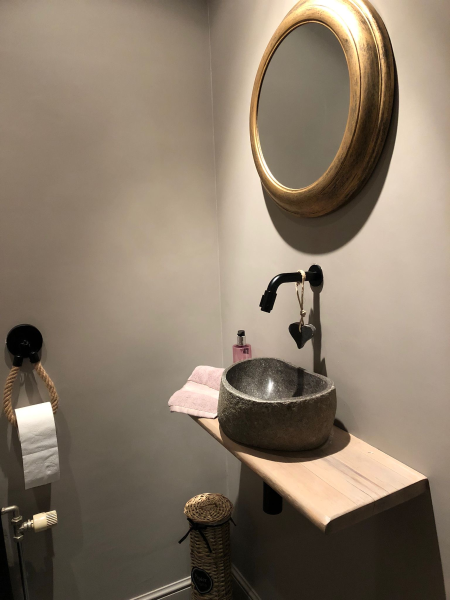 Zeer tevreden van ons badkamermeubel Rinske. Ze blinkt in onze badkamer!!!! Goede support van Mika gekregen. Goede service bij de levering. Tip:het zou handig zijn als er een handleiding bij zat hoe Rinske te onderhouden. ( gezien het om oud en grof hout gaat. Zie ze blinken ( foto)